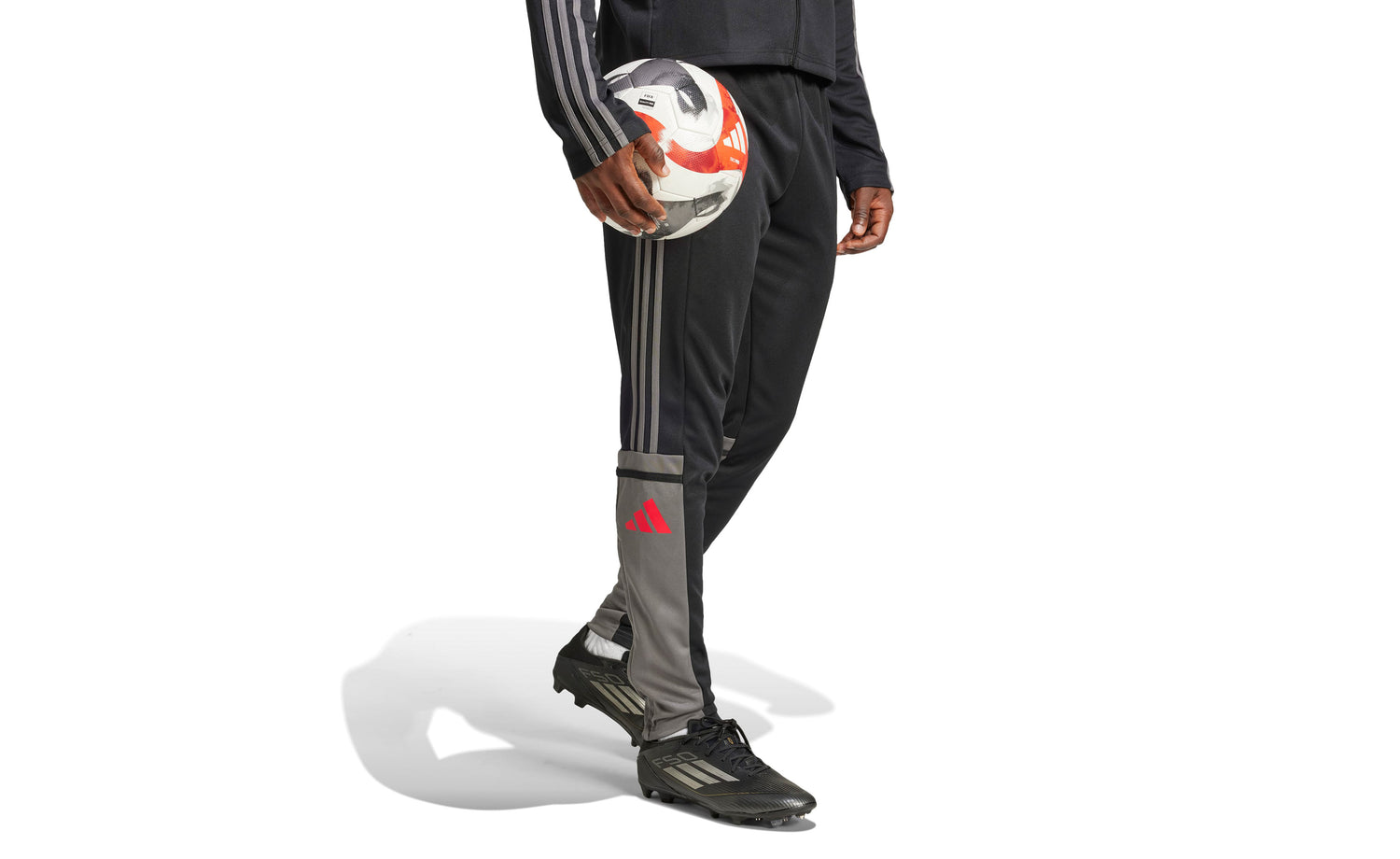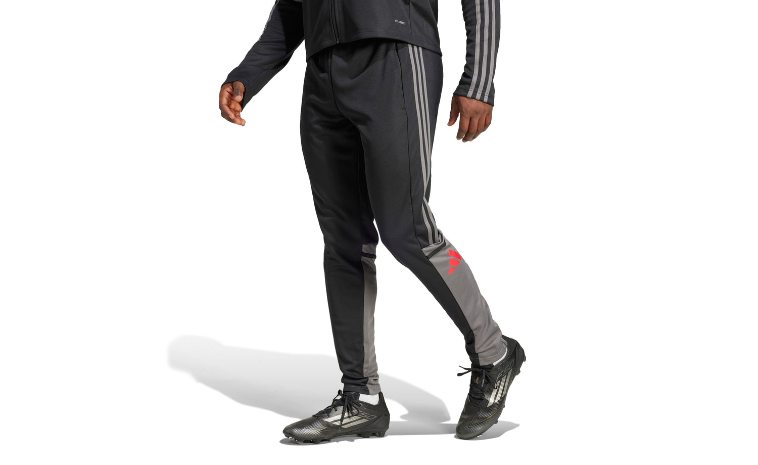- Color negro con logo adidas y detalles en gris y naranja.