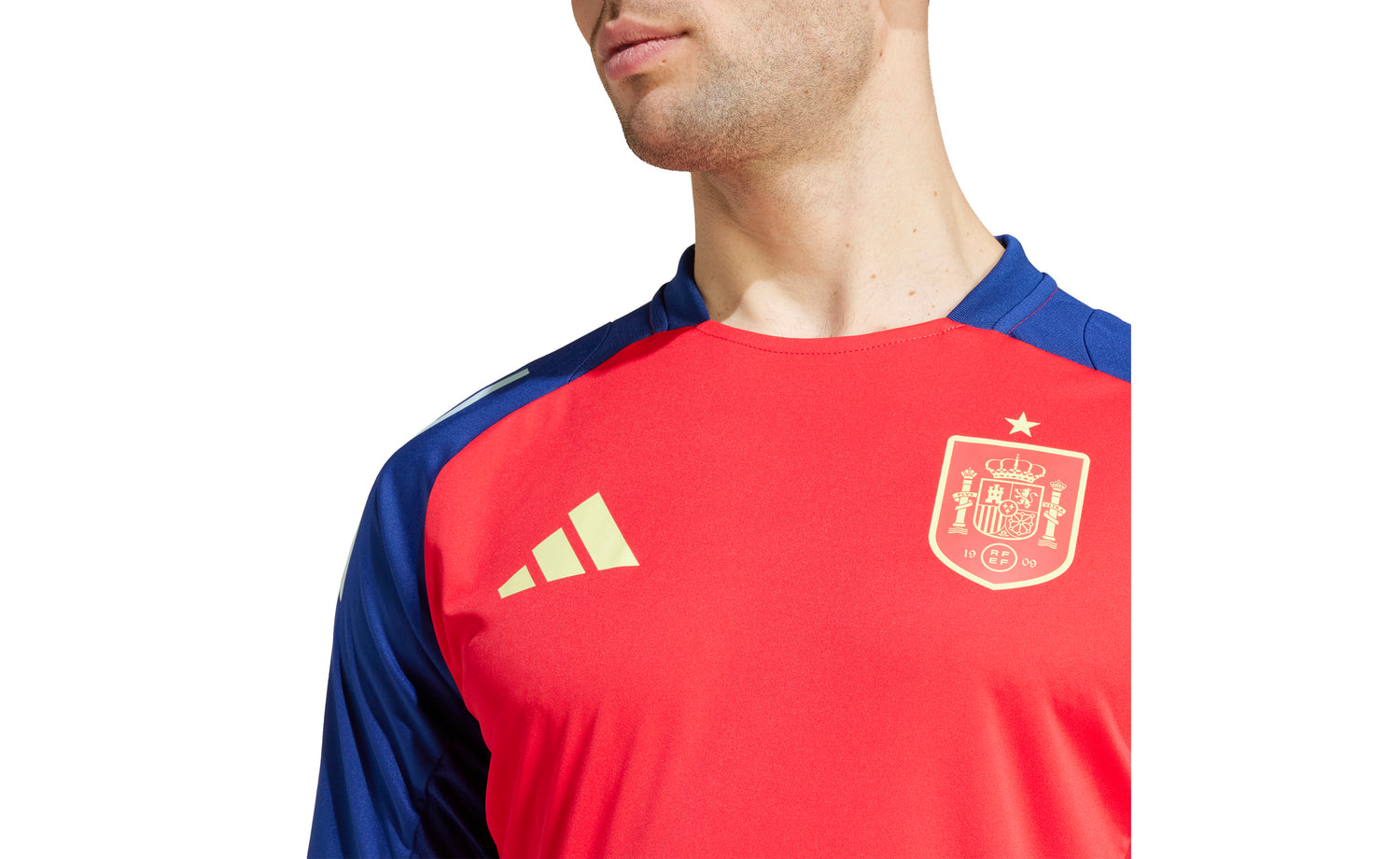 La camiseta adidas ESPAÑA 24 TIRO TRAINING JERSEY es una camiseta oficial de entrenamiento, creada para la selección española para la Euro 24 de Alemania.