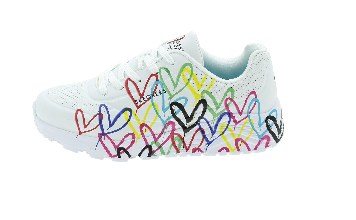 La zapatilla SKECHERS UNO LITE SPREAD THE LOVE es una zapatilla casual fabricada en materiales cómodos y resistentes, con un diseño muy combinable.